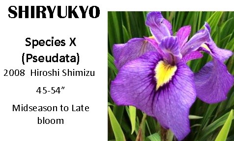 PSEUDATA - Spec-X - cross of Pseudacorus and Ensata (Japanese) iris - distinctive "eye" on falls - bloom with late TBs and Japanese.