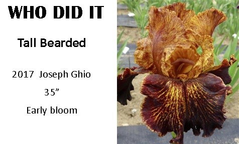 IB = Intermediate Bearded - 16" - 27.5" - Smalled plants - bloom between the SDBs and the TBs